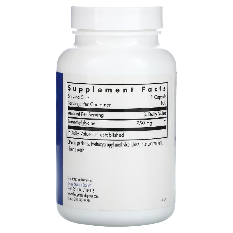 Купить Allergy Research Group, Триметилглицин ТМГ, 100 растительных капсул – цена 5530 ₽, заказать с доставкой в Саратов | Интернет-магазин saratov.fakeoff.ru