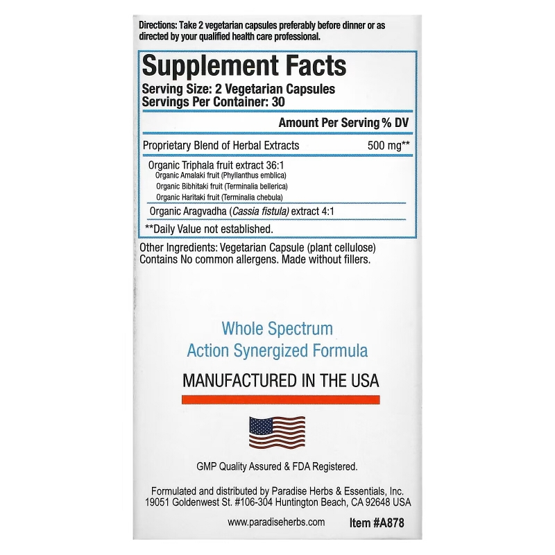 According to Ayurveda, poor digestion, constipation and bloating are common imbalances of a sluggish colon associated with low angi (digestive fire). Our premium quality Ayurvedic Cleanse formula contains super potent extracts of Triphala and Cassia to bring you the most active and gently Paradise daily Colon health formula available.