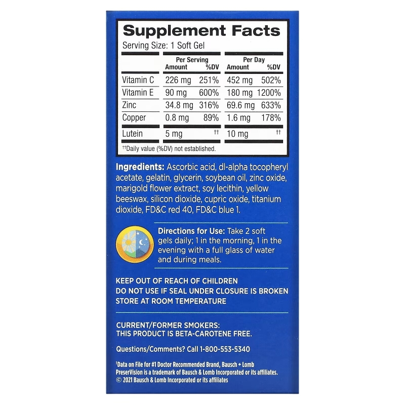 Bausch & Lomb PreserVision, AREDS Lutein, Eye Vitamin & Mineral Supplement, 120 Soft Gels – отзывы, купить с доставкой по Москве и России по цене выгоднее, чем в аптеке | интернет-магазин saratov.fakeoff.ru