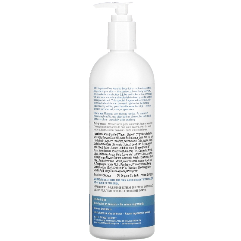 Неароматизированный лосьон для рук и тела от BWC увлажняет, смягчает и защищает кожу — это идеальное средство для ухода за кожей. Богатые натуральными смягчающими веществами масла ши, жожоба и лакового дерева соединены с алоэ, они разглаживают и улучшают состояние кожи, делая кожу молодой и сияющей.