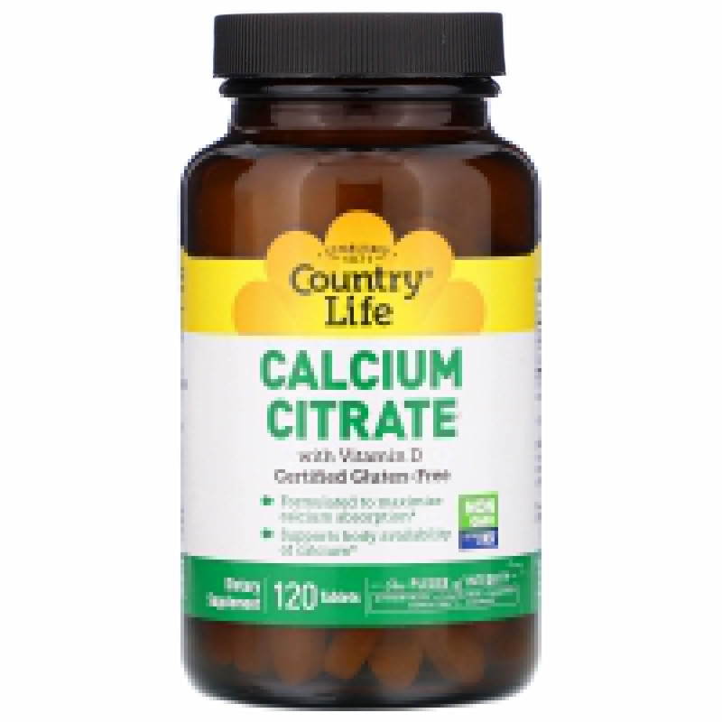 Описание добавки Country Life, Цитрат кальция с витамином D, 120 таблеток