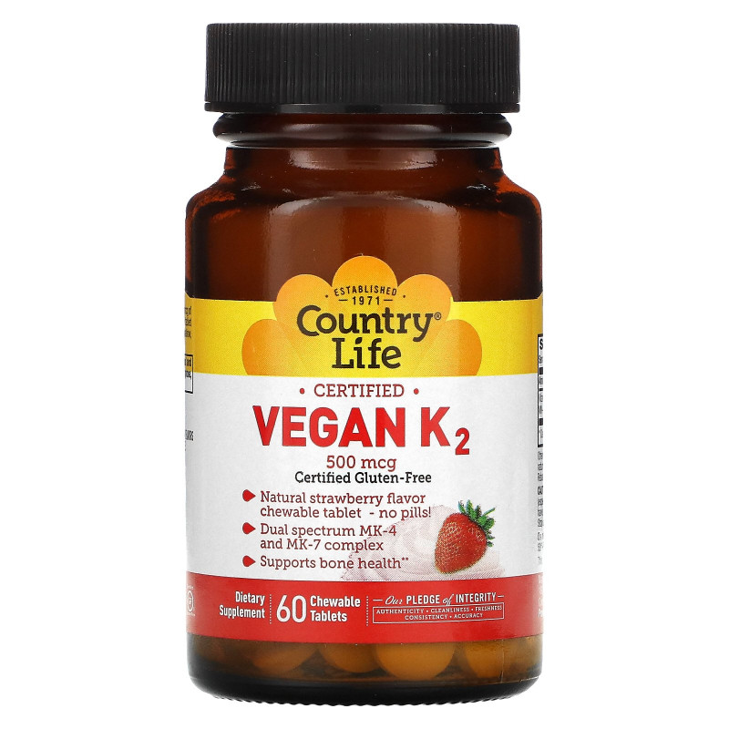 Country Life Витамин K2 в виде веганских таблеток для рассасывания клубника 500 мкг 60 таблеток для рассасывания – отзывы, купить с доставкой по Москве и России по цене выгоднее, чем в аптеке | интернет-магазин saratov.fakeoff.ru