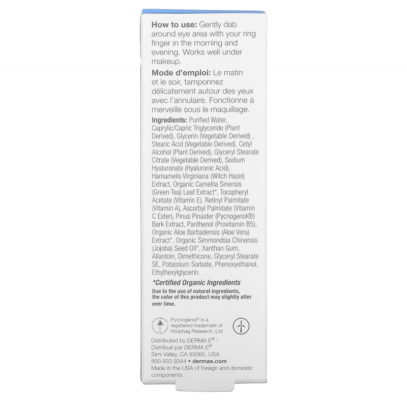 Derma E, Увлажняющий крем для глаз с гиалуроновой кислотой и пикногенолом, 14г