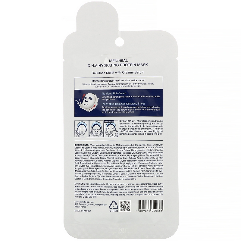 Купить Mediheal, D.N.A Hydrating Protein Mask, 1 Sheet, 0.84 fl oz (25 ml) – цена 670 ₽, заказать с доставкой в Саратов | Интернет-магазин saratov.fakeoff.ru