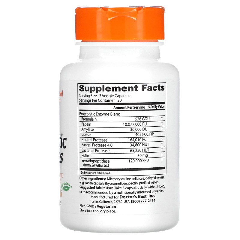 Doctor's Best Лучшие протеолитические ферменты 90 желудочно-резистентных вегетарианских капсул