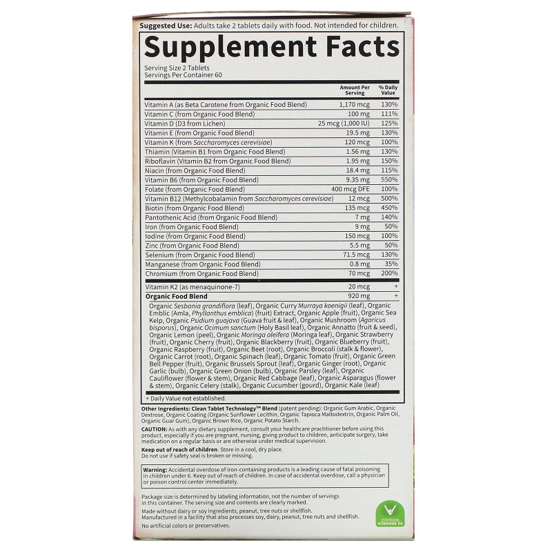 Garden of Life KIND Organics Мультивитамины для женщин 120 веганских таблеток