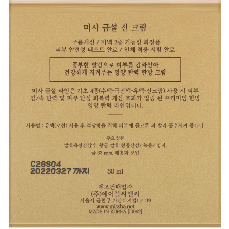 Другие ИнгредиентыSaccharomyces/panax ginseng root ferment filtrate, water, glycerin, cetyl ethylhexanoate, nephrite extract, hydrogenated polydecene, propanediol, dipropylene glycol, limnanthes alba (meadowfoam) seed oil, macadamia ternifolia seed oil, diisostearyl malate, niacinamide, orbignya oleifera seed oil, glyceryl stearate, cetearyl alcohol, cyclopentasiloxane, dimethicone, betaine, 1,2-hexanediol, butylene glycol, cyclohexasiloxane, peg-100 stearate, stearic acid, palmitic acid, polyacrylate-13, behenyl alcohol, hydrogenated vegetable oil,fragrance, panax ginseng root extract, tocopheryl acetate, polysorbate 60, neopentyl glycol diheptanoate, polyisobutene, caprylyl glycol, velvet extract, ganoderma lucidum (mushroom) extract, carbomer, ethylhexylglycerin, phenoxyethanol, tromethamine, camellia japonica seed oil, sorbitan stearate, panthenol, glyceryl polyacrylate, benzophenone-5, glycyrrhiza glabra (licorice) root extract, phytosteryl hydroxystearate, adenosine, disodium edta, coptis japonica root extract, xanthan gum, biosaccharide gum-1, sodium magnesium silicate, polysorbate 20, sorbitan isostearate, hydrolyzed hyaluronic acid, phytosterols, aquilaria agallocha stem extract, myristic acid, gold, pantolactone, sodium hyaluronate, scrophularia buergeriana extract, aspergillus ferment, codonopsis lanceolata root extract, saccharomyces ferment, salvia miltiorrhiza root extract, bacillus ferment, astragalus membranaceus root extract, hydrolyzed codonopsis pilosula root extract, bifida ferment extract, lactobacillus ferment, sophora angustifolia root extract.