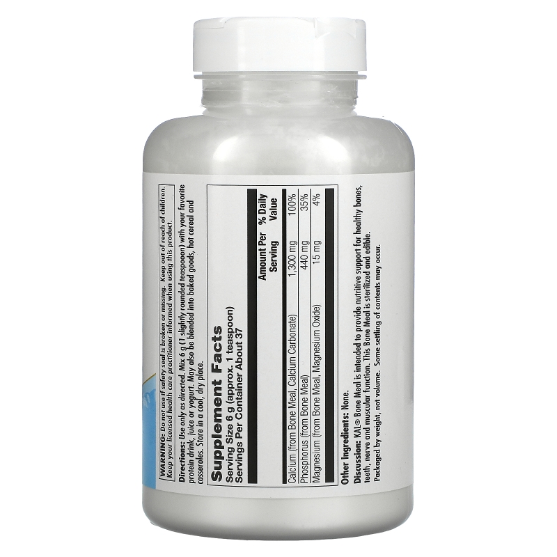 Обсуждение: KAL Bone Meal предназначен для обеспечения питательной поддержки здоровых костей, зубов, нервов и мышечной функции. Эта костная мука стерилизуется и съедобна.