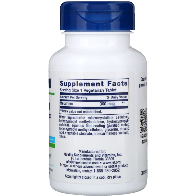 Life Extension Мелатонин 6-часовое высвобождение 300 мкг 100 растительных таблеток