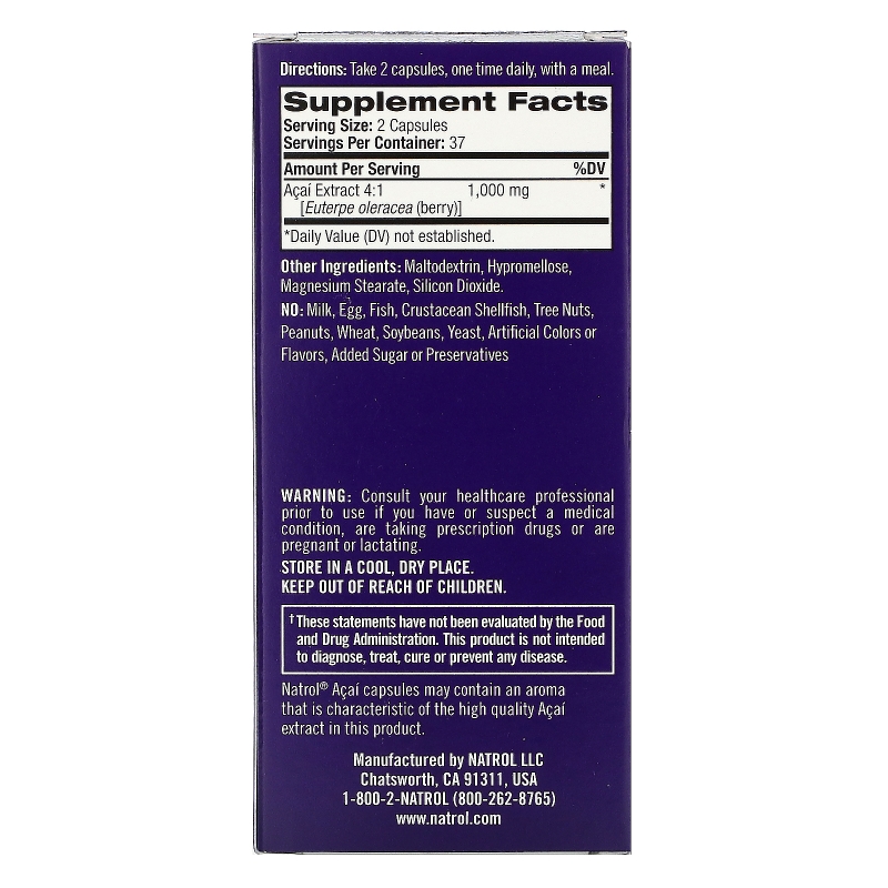 Купить Natrol, Ягоды асаи, 1000 мг, 75 вегетарианских капсул – цена 2180 ₽, заказать с доставкой в Саратов | Интернет-магазин saratov.fakeoff.ru