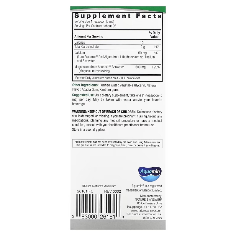 Комплекс минералов, кальция и магния Aquamin® получен из морской воды и красных водорослей, собранных в прохладных, чистых и нетронутых водах у побережья Исландии. Он содержит биоактивный магний, кальций и 72 других микроэлемента.