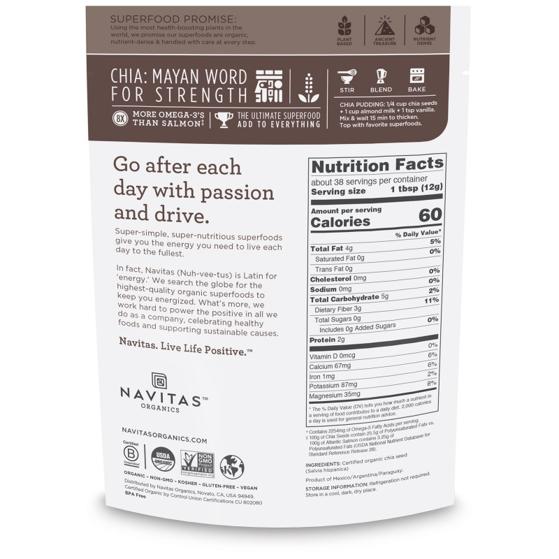 Купить Navitas Naturals Organic сырые семена чиа 16 унций (454 г) – цена 3460 ₽, заказать с доставкой в Саратов | Интернет-магазин saratov.fakeoff.ru