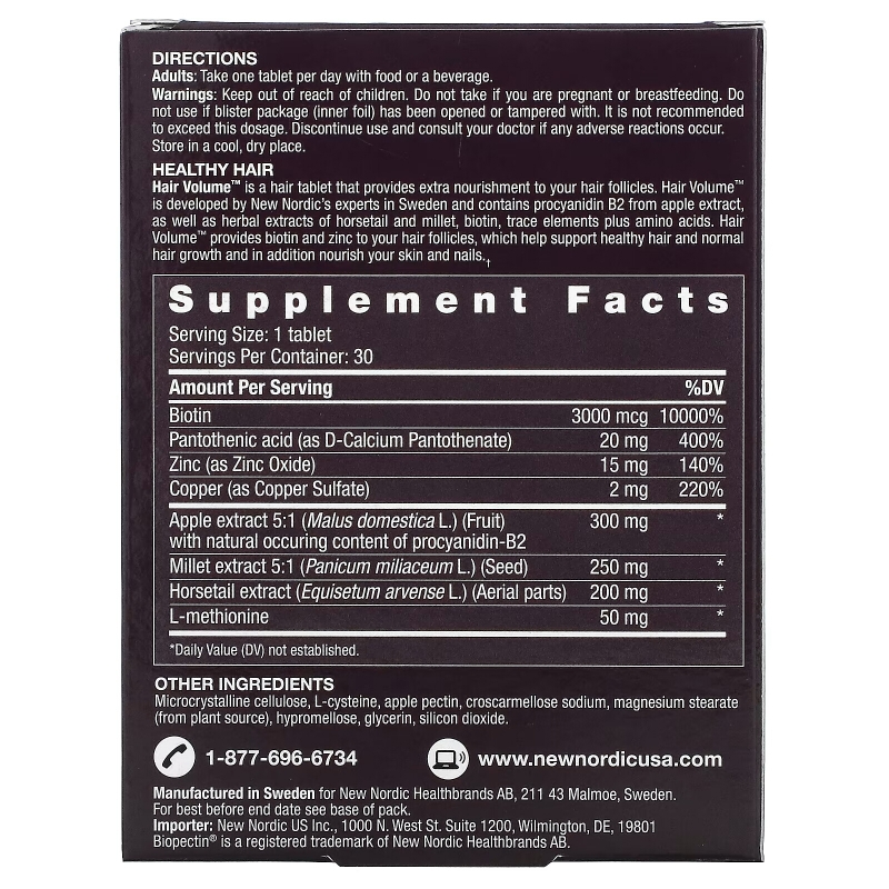 New Nordic US Inc Hair Volume 30 таблеток