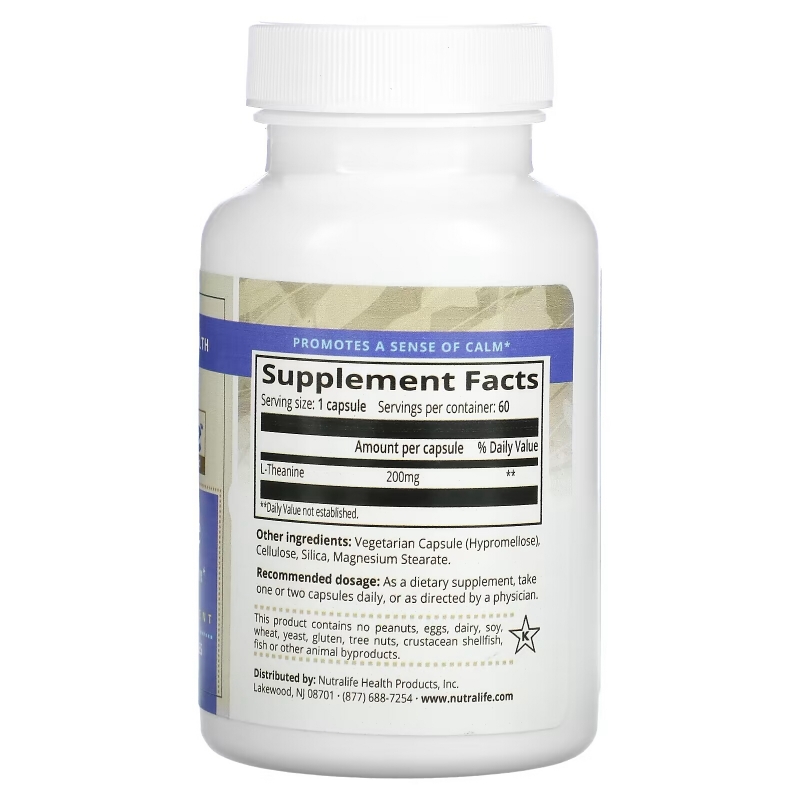 Описание добавки NutraLife L-Теанин 200 мг 60 Капсул