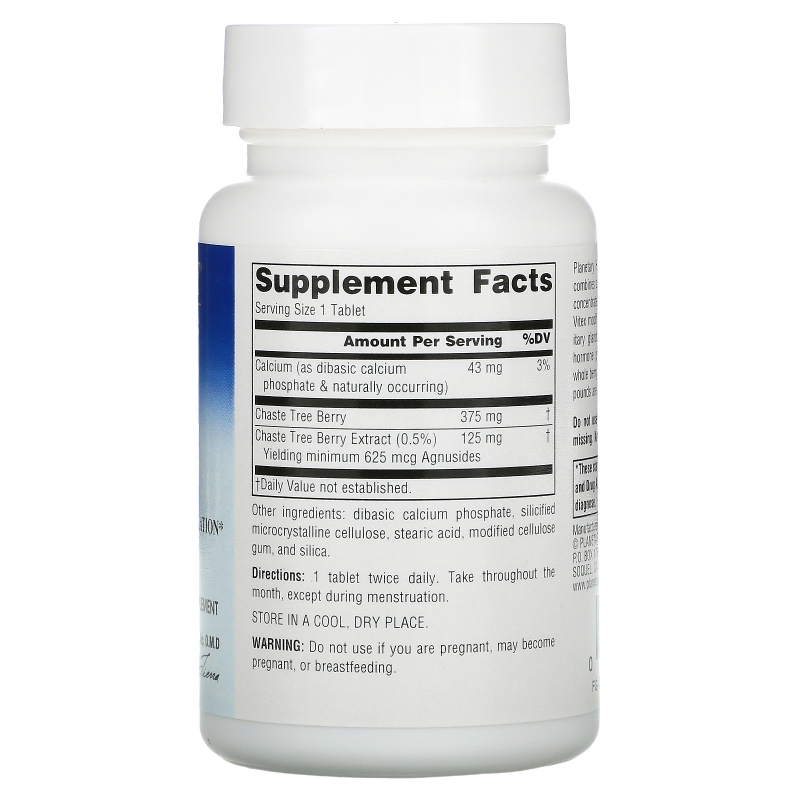 Экстракт Витекса полного спектра от Planetary Herbals включает в себя стандартизированный экстракт ягод Авраамовых деревьев, концентрированный до 0,5% агнузидов, с цельными ягодами. Витекс изменяет действие гипоталамуса и гипофиза. Это помогает регулировать и балансировать воспроизводство женского гормона. Сочетание экстракта с цельными ягодами гарантирует, что полный спектр компонентов витекса собран в данном продукте.