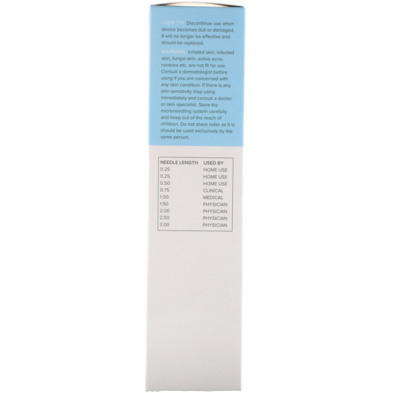 Не использовать при раздражении кожи, инфекциях кожи, поражении грибком, активных акне, розацее и т. д. Перед употреблением проконсультируйтесь с дерматологом, если вы не уверены в состоянии своей кожи. При возникновении любого раздражения незамедлительно прекратите применение и проконсультируйтесь с врачом или дерматологом/косметологом. Храните систему микроигл согласно инструкциям и в недоступном для детей месте. Не используйте ролик совместно с другими людьми. Он предназначен для одного пользователя.