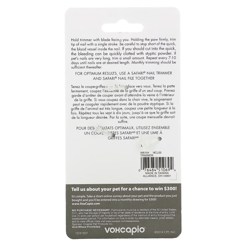 Safari, Stainless Steel Nail Trimmer, Small Dogs, 1 Tool