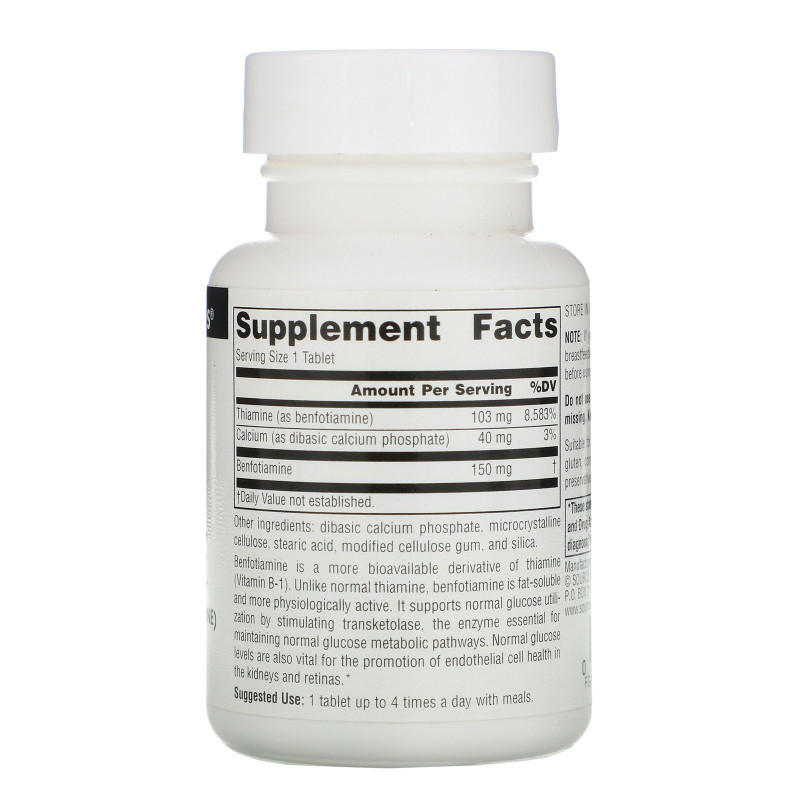 Описание добавки Source Naturals, Бенфотиамин, 150 мг, 60 таблеток