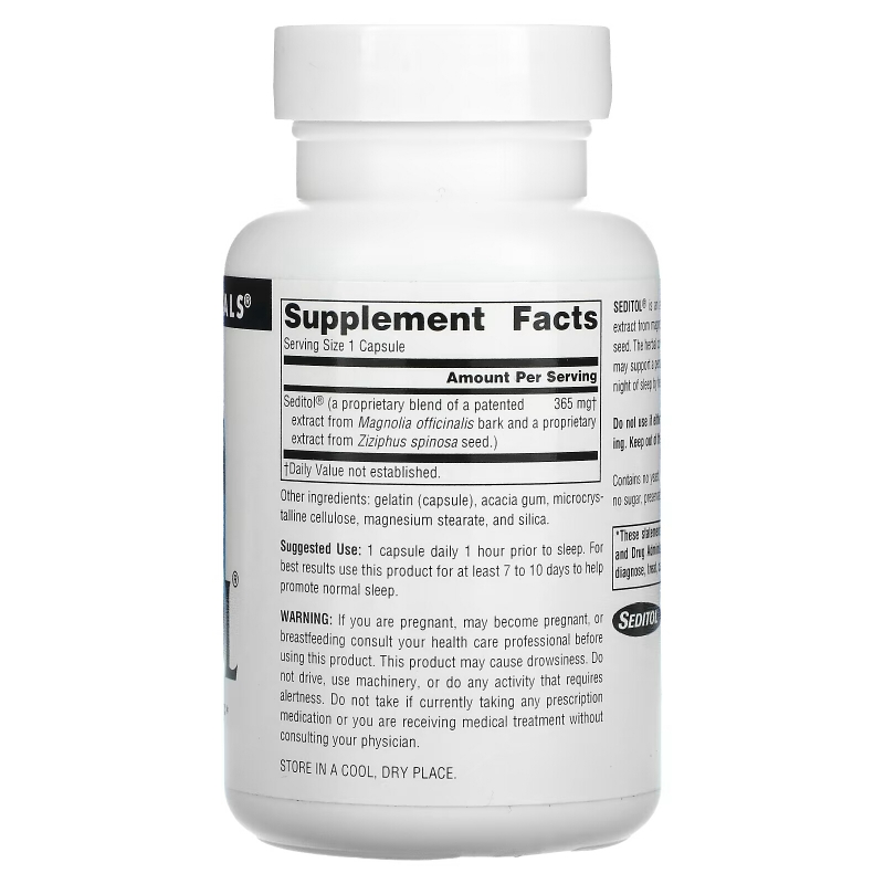 Компоненты добавки Source Naturals, Seditol, 365 mg, 60 Capsules