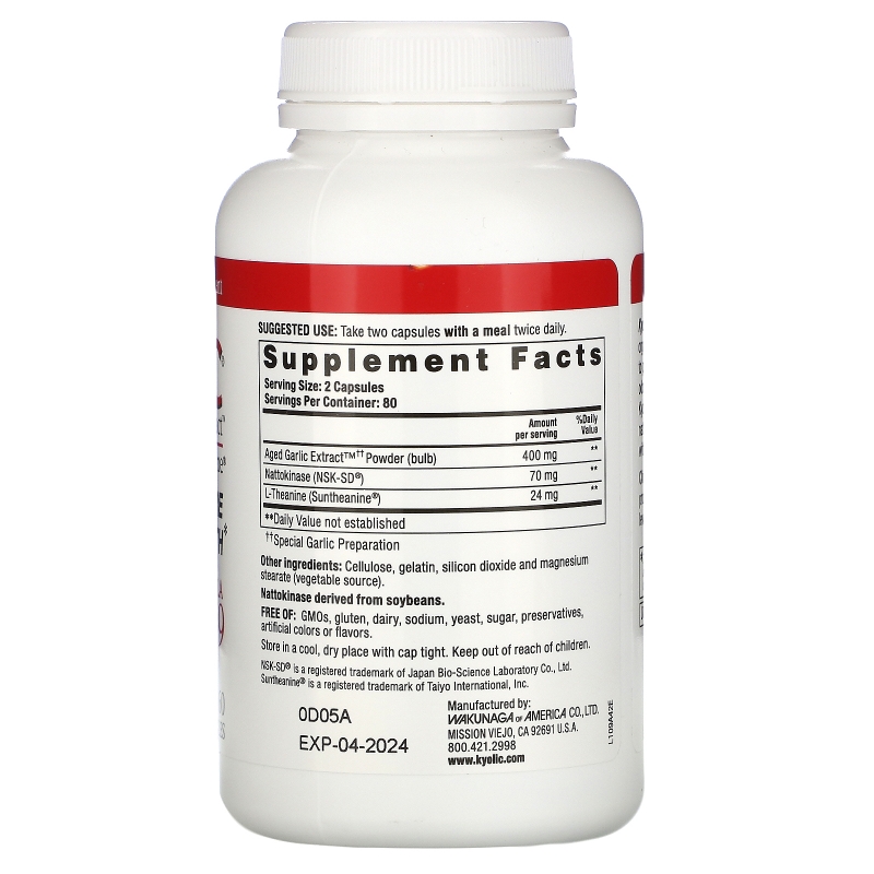 Wakunaga - Kyolic Экстракт Выдержанного Чеснока для Нормализации Кровяного Давления Формула 109 160 капсул – отзывы, купить с доставкой по Москве и России по цене выгоднее, чем в аптеке | интернет-магазин saratov.fakeoff.ru