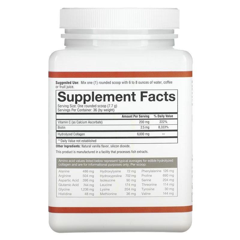 | Protein (Collagen Peptide Type 1 & 3 | 6 g | 12% |